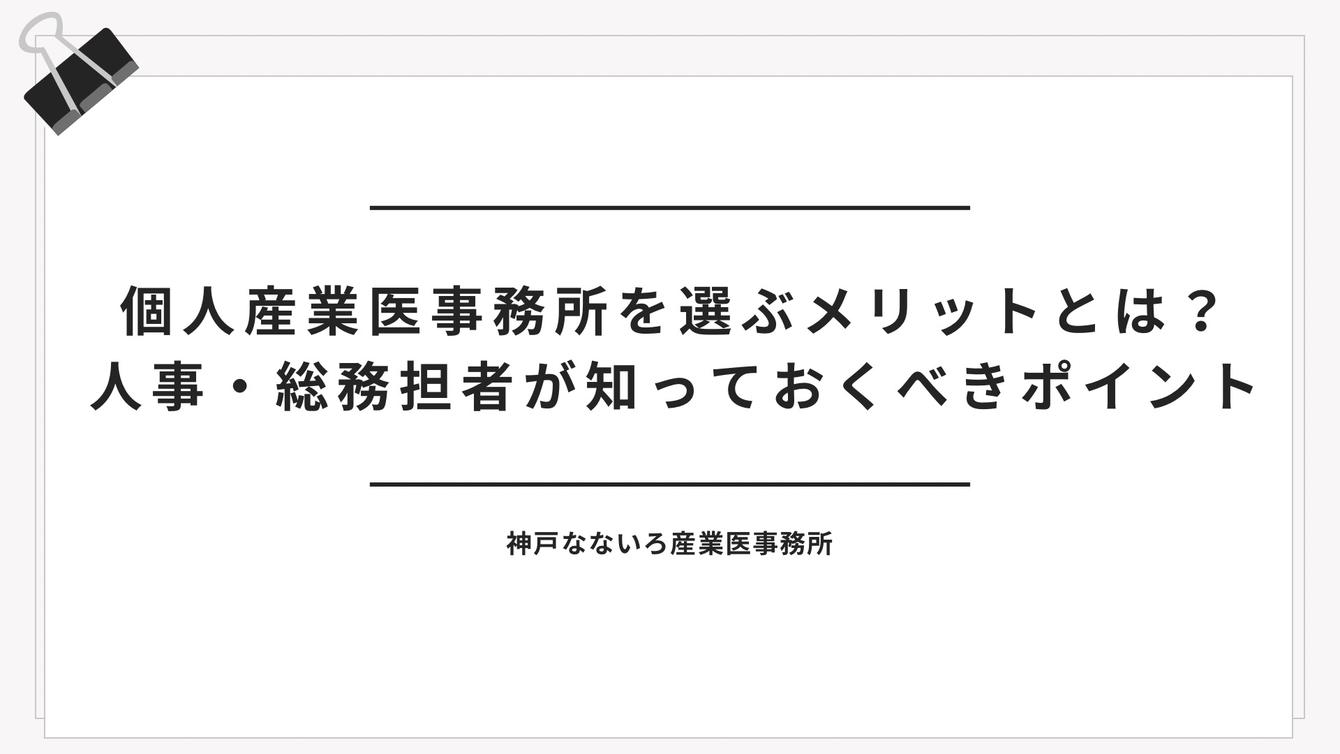 まとめると、個人産業医事務所は「柔軟性・即応性・深い関与」が求められる状況で特に有効であり、従業員の健康管理を単なる義務としてではなく、戦略的に活かしたい企業に向いているといえます。